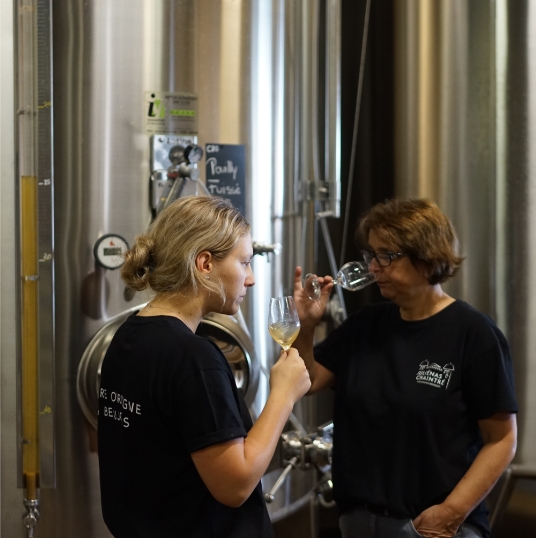 maître de chai, œnologues et cavistes, regroupe les compétences techniques et complémentaires pour l’élaboration des vins. Ils conduisent l’ensemble des étapes de vinification et d’élevage et supervise l’évolution à tous les instants pour obtenir des vins à l’image de nos terroirs.